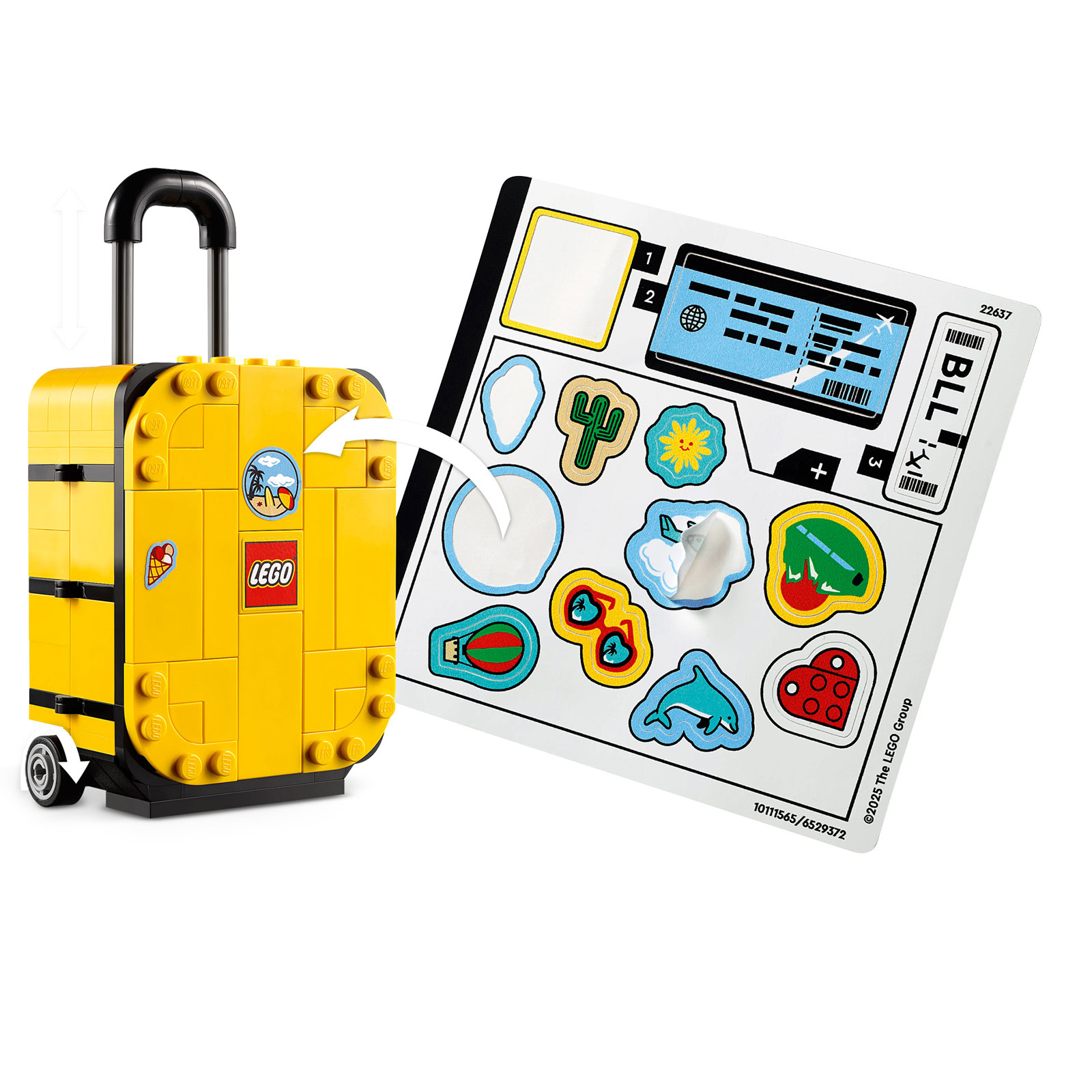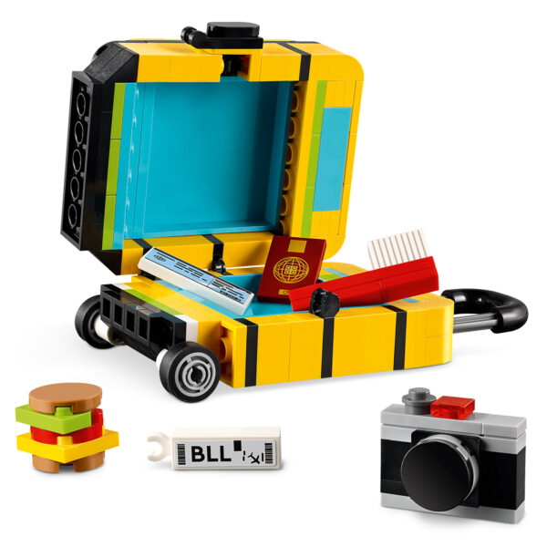 Cette petite boite de 184 pièces qui sera disponible dès le 1er avril 2025 au prix public de 14,99 € permettra d'assembler une valise à personnaliser à l'aide d'une poignée de stickers, un appareil photo, un passeport, un billet d'avion, une brosse à dents et un micro-sandwich.