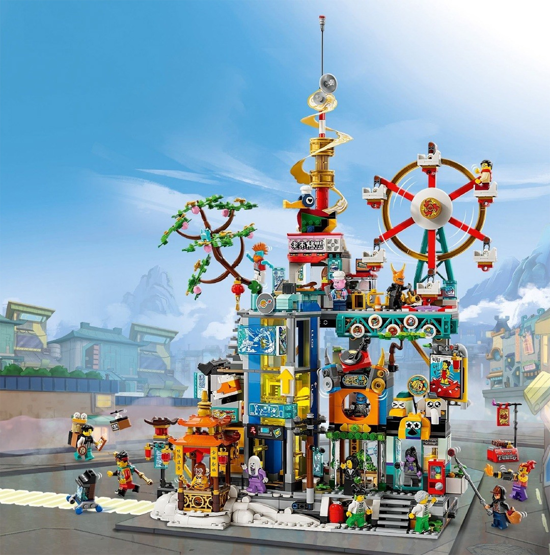 Le set LEGO Monkie Kid 80054 Megapolis City est maintenant en ligne dans l'application officielle qui héberge les instructions des produits LEGO et on découvre donc le contenu de cette grosse boite de 2330 pièces qui devrait être disponible dès le début de l'année prochaine pour célébrer les 5 ans de la licence maison. Le produit permettra d'assembler un ensemble de modules à combiner entre eux pour former la ville visible sur l'emballage, le tout sera peuplé par une quinzaine de minifigs. Au programme, un restaurant de nouilles, un magasin de disques, une clinique chiropratique, une grande roue et même un ascenseur.
