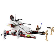 Dans la boite, une nouvelle interprétation de l'engin déjà vu chez LEGO en 2008 dans le set 7679 Republic Fighter Tank puis en 2017 dans le set 75182 Republic Fighter Tank, accompagnée ici de Mace Windu avec une jolie tampographie sur les bras, d'un Clone Commander et de deux Clone Troopers de la 187ème Légion. L'opposition aux forces en présence est incarnée par deux Battle Droids.