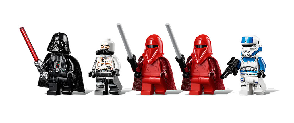 Cet ensemble inclus, le classique Dark Vador, une version de la cuve à bacta du Seigneur noir, plus 2 gardes royaux et un pilote de transport impérial.