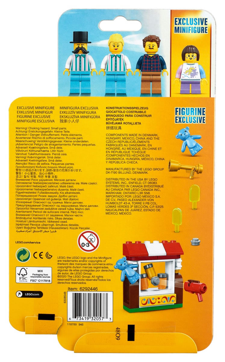 La référence 40373 Fairground Accessory Set nous permettra d'obtenir quatre minifigs qui accompagneront une petite attraction à construire. La jeune fille sera exclusive à cette boite avec son visage inédit et son t-shirt avec une licorne. À acheter pour éventuellement étoffer un diorama de fête foraine.