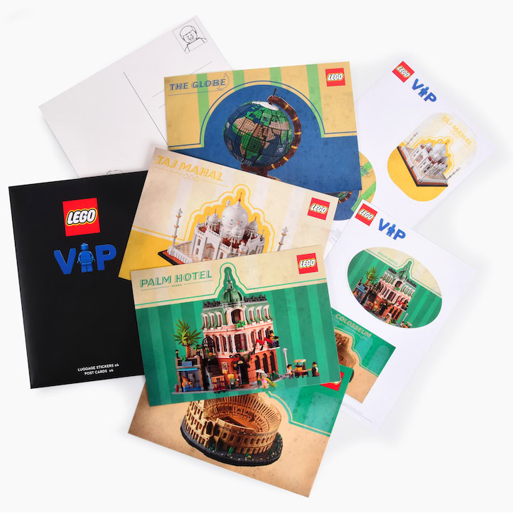 Pendant que les américains se régalent avec des cadeaux en plastique, LEGO nous récompense avec du papier : vous pouvez maintenant échanger 600 de vos points VIP contre un lot de quatre cartes postales à envoyer à vos amis depuis votre lieu de vacances et quatre autocollants à coller sur votre valise qui permettront de vous "démarquer dans un terminal bondé !", c'est LEGO qui le dit.