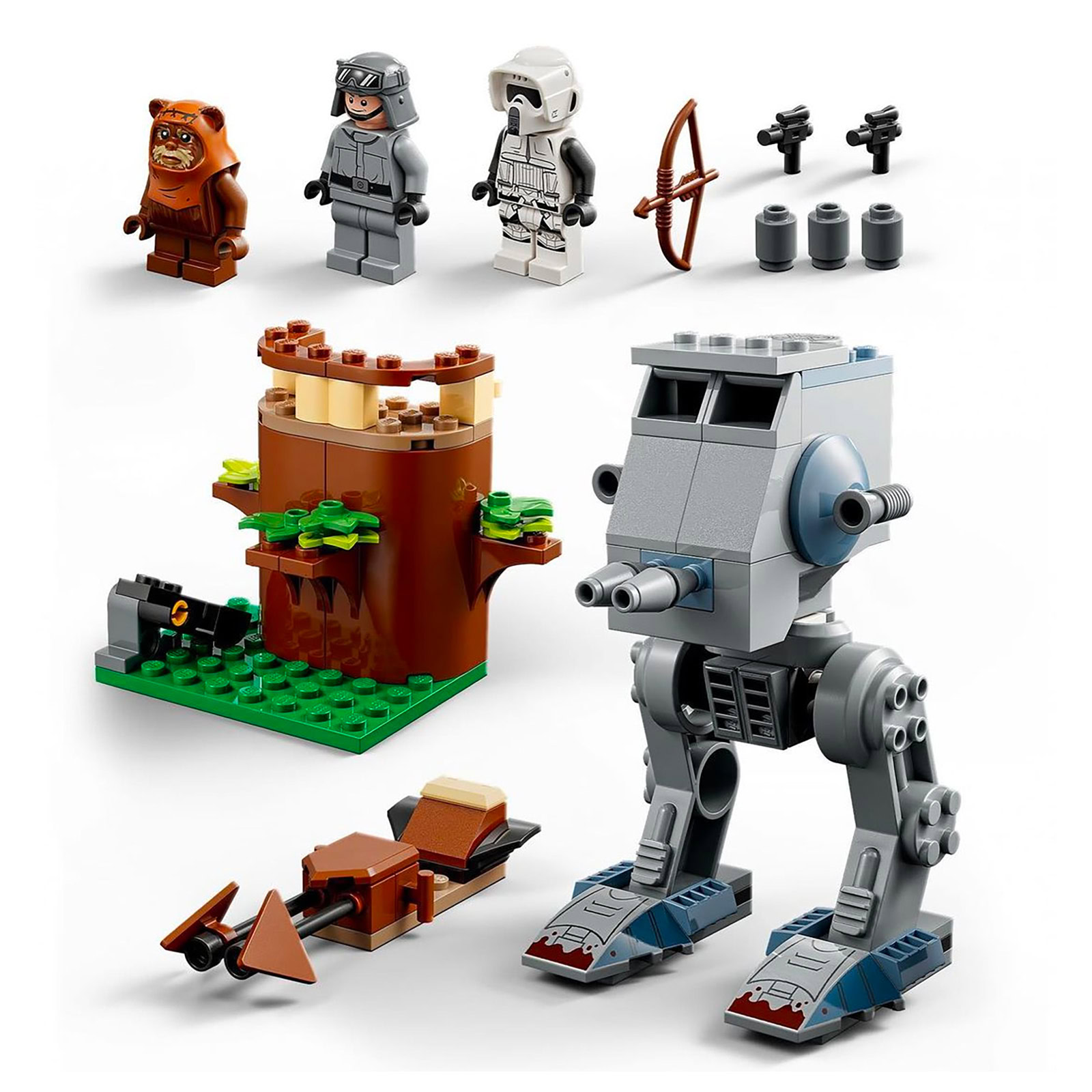 C'est une fois de plus grâce à l'application officielle LEGO qui permet d'accéder aux instructions en version numérique que le fabricant dévoile une nouveauté de la gamme LEGO Star Wars : la référence 75332 AT-ST, une boite estampillée 4+ qui permettra d'assembler un mini-AT-ST, un speeder bike, un demi tronc d'arbre et d'obtenir au passage trois minifigs avec Wicket, un Scout Trooper et un pilote d'AT-ST. Rien de fou dans cette boite de 87 pièces, mais de quoi occuper les plus jeunes fans de la saga avant de leur proposer des constructions plus complexes.