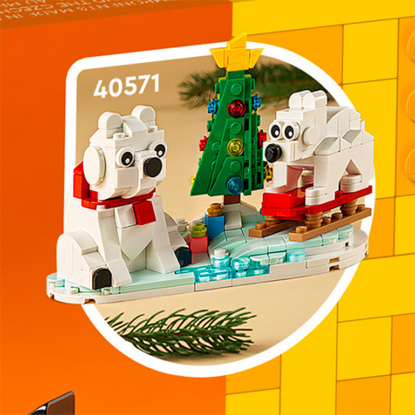 En bonus, on découvre au dos de la boite le set saisonnier hivernal prévu pour cette année avec deux ours polaires et un sapin de Noël, il portera la référence 40571.