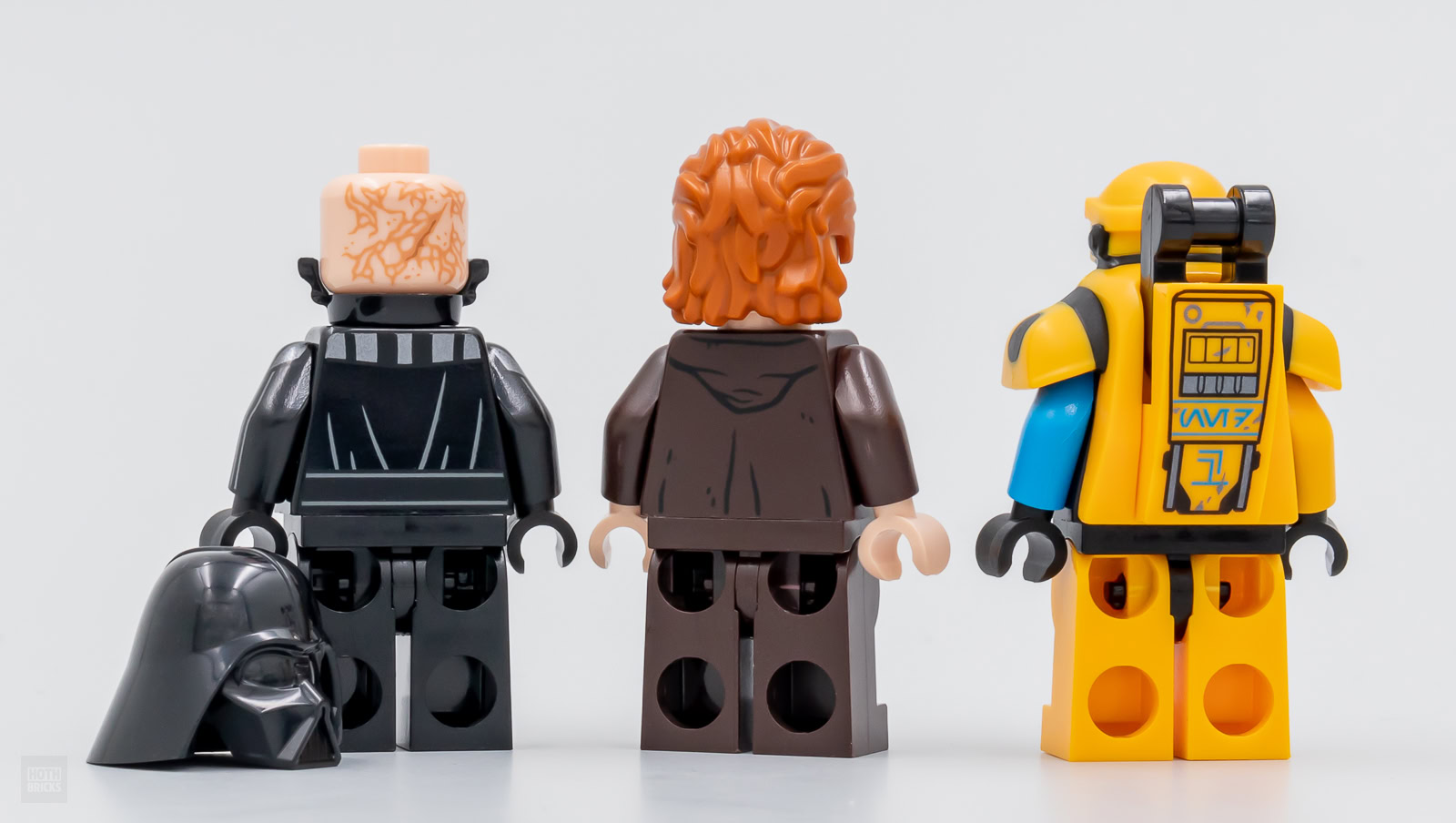 La minifig de Darth Vader réutilise les jambes et le torse déjà vus dans plusieurs sets depuis la référence 75291 Death Star Final Duel commercialisée en 2020 et le casque en deux parties disponible depuis 2015. Dommage pour la cape qui aurait pu être moulée pour l'occasion, il faudra se contenter du bout de tissu habituel. La tête est inédite, elle est dans l'esprit de celle vue dans plusieurs sets en 2017.
