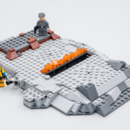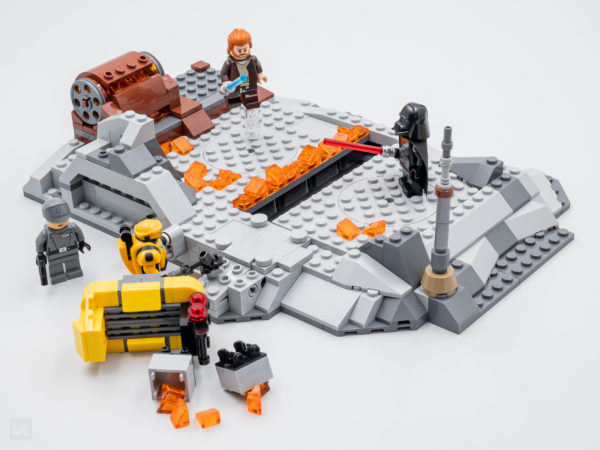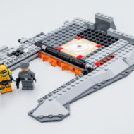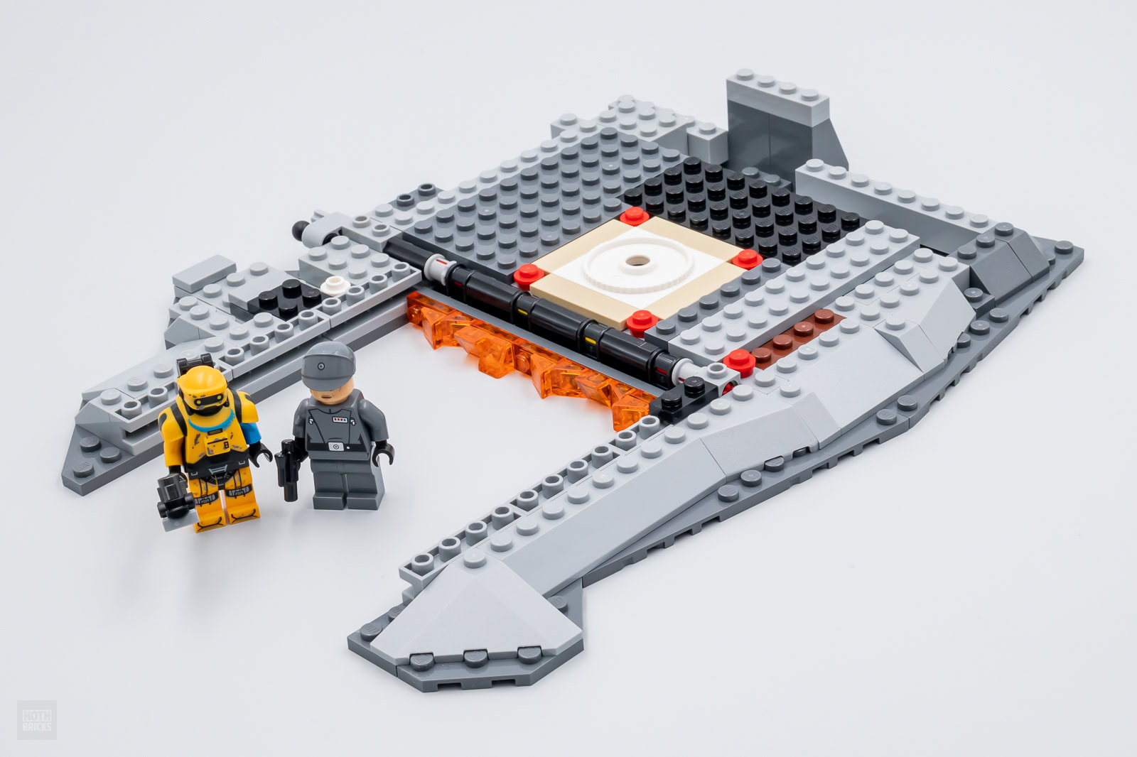 Le designer a bien essayé d'aller jusqu'au bout des limitations du cahier des charges fourni par ses supérieurs en intégrant deux plateformes rotatives, un levier qui permet de ranger le "rideau" de flammes et de le sortir quand le besoin s'en fait sentir et un système qui permet d'éjecter le wagonnet jaune sous l'effet de la Force, mais cette débauche de fonctionnalités tombe à plat parce que le contexte n'y est pas. LEGO arrive même à nous imposer un élastique qui reste bien visible sur le côté du socle, à ce stade, on ne peut même plus parler de manque de motivation.