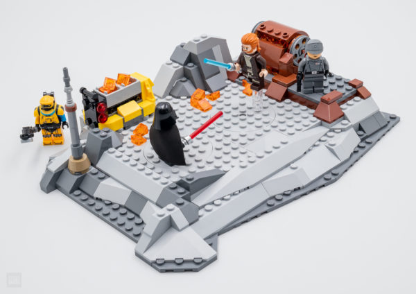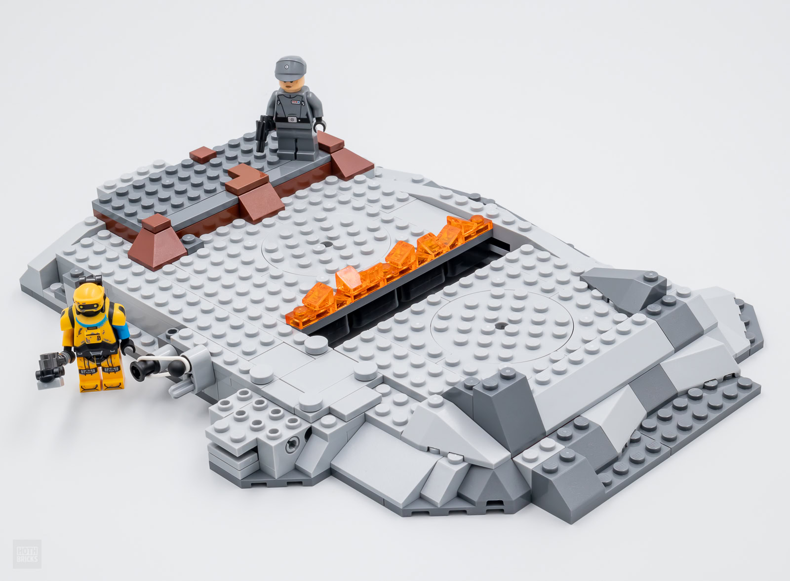 Le décor de ce mini-diorama est du niveau d'un très jeune fan qui a compris qu'on peut simplement empiler des briques mais qu'il faut aussi ajouter quelques petites pièces pour peaufiner le travail : c'est mignon à l'arrivée, les parents y voient toujours une œuvre d'une certaine créativité parce que c'est le fruit de leur progéniture mais ce n'est pas digne d'un produit officiel vendu 50 €. Il n'y a d'ailleurs quasiment aucun contexte en dehors de quelques flammes vaguement incarnées par les petites briques oranges et la présence de Tala Durith en tenue impériale relève sans doute de l'impossibilité de la placer dans un autre set qui n'existe pas.