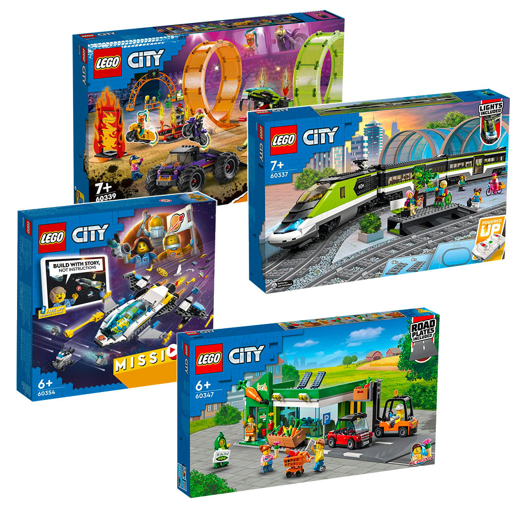 On découvre aujourd'hui les autres boites de la gamme LEGO CITY qui rejoindront celles déjà dévoilées dès le 1er juin prochain. Au programme, un train de passagers avec son circuit et sa motorisation via l'écosystème Powered Up, un supermarché écolo et inclusif avec ses panneaux solaires et une nouvelle minifig équipée d'une prothèse de jambe, quelques références de l'univers STUNTZ avec une ambiance Hot Wheels et trois sets "Missions" qui mettent en scène des sauveteurs, des policiers et des astronautes.
