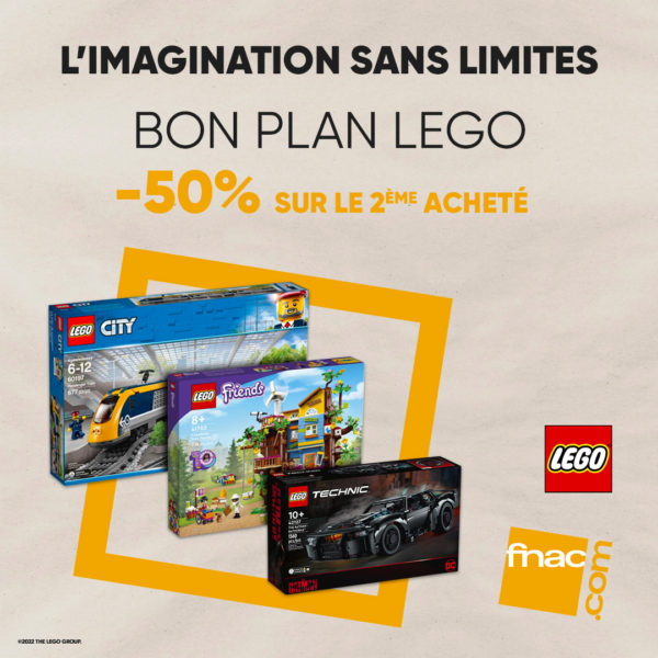 Retour de l'opération promotionnelle LEGO habituelle sur FNAC.com avec 50% de réduction immédiate sur le 2ème set LEGO acheté parmi une sélection de boites. Au menu : près de 180 produits concernés dans les gammes LEGO CITY, Technic, Ninjago, Friends, Classic et DUPLO. Ce n'est pas l'offre de l'année, mais ça permet toujours d'anticiper quelques anniversaires ou quelques bulletins aux moyennes élevées et aux appréciations positives.