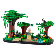 Le reste du set ne sert qu'à mettre en valeur la minifig et les trois chimpanzés fournis, il s'agit d'assembler un socle aux courbes similaires à celles du set 40450 Amelia Earhart Tribute offert chez LEGO l'an dernier à la même époque et de meubler ensuite le support avec quelques arbres, un peu de végétation et un bout de ruisseau. Une petite plaque avec un sticker confirmant l'identité et la qualification de la figurine fournie prend place à l'avant du mini diorama. C'est bien réalisé sans être révolutionnaire, l'objet pourra trôner sur une étagère ou sur le coin d'un bureau sans prendre trop de place mais en se faisant remarquer.