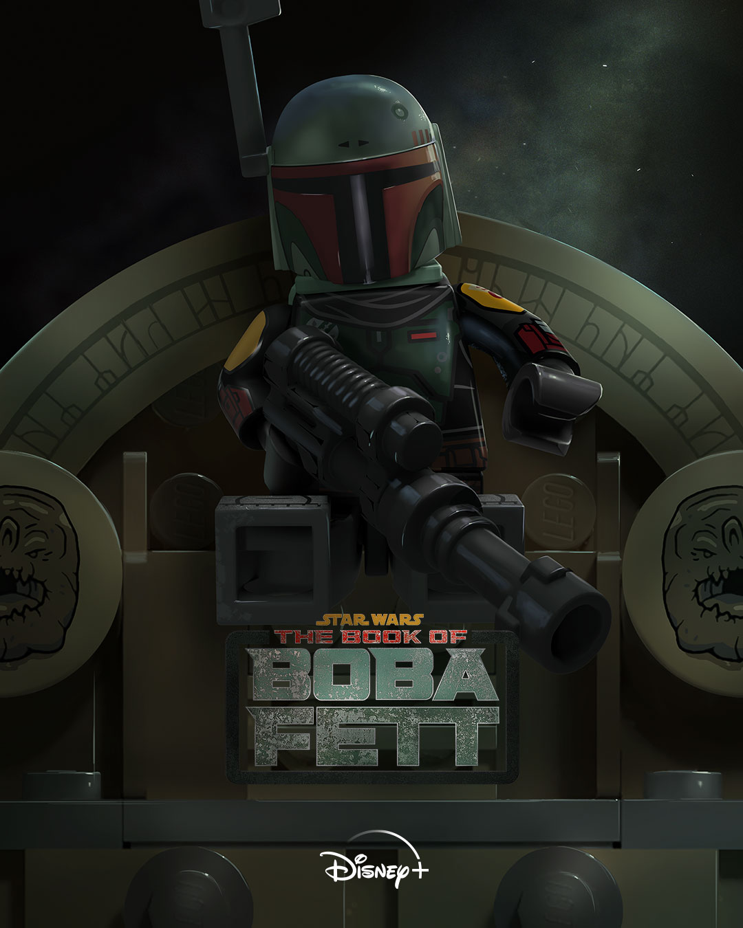 LEGO n'a pas manqué de participer à la fête autour de la disponibilité du premier trailer de la série Star Wars : The Book of Boba Fett dont la diffusion débutera dès le 29 décembre prochain sur la plateforme Disney + avec la mise en ligne d'un poster présentant le chasseur de primes assis sur son trône.