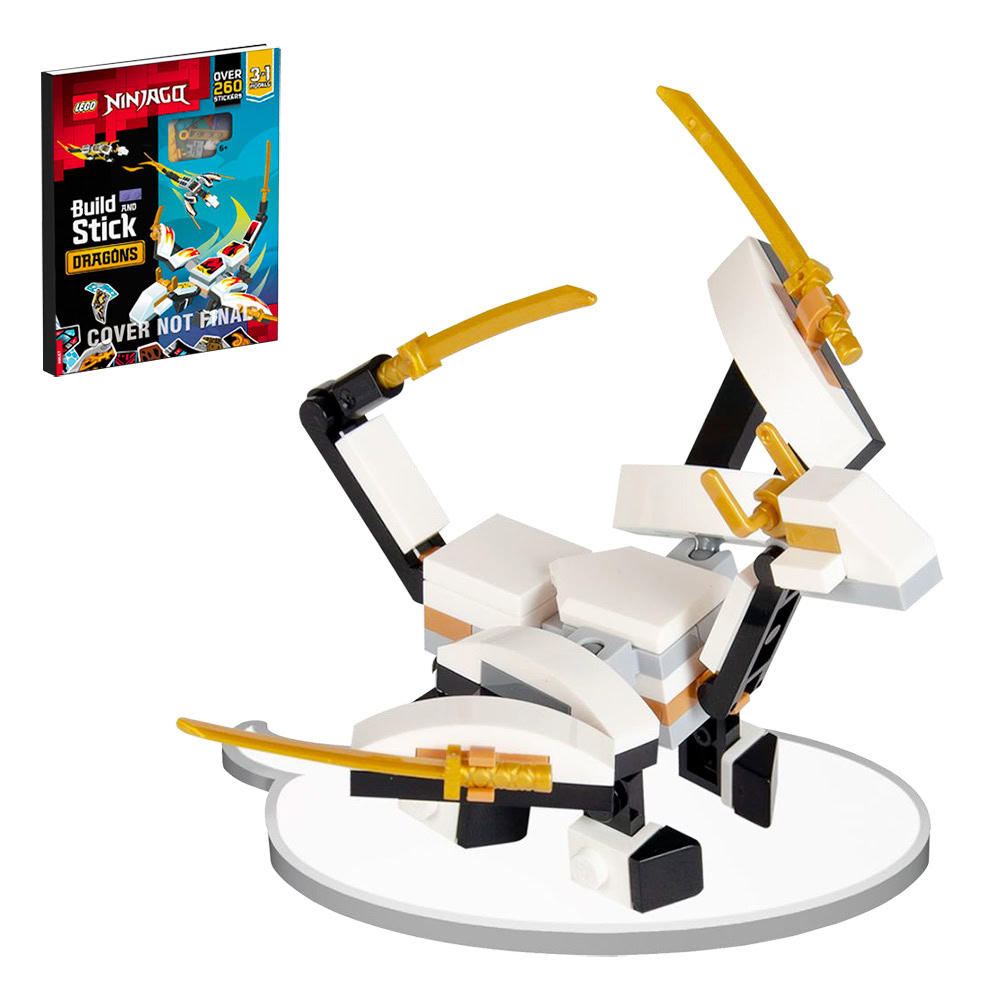 - LEGO Ninjago Build and Stick : Dragons, un livre d'activités de 48 pages dont 4 regroupant 260 stickers et 49 éléments qui permettront d'assembler trois dragons exclusifs différents imaginés par les designers LEGO. (en précommande chez Amazon, disponible le 1er juin 2022)