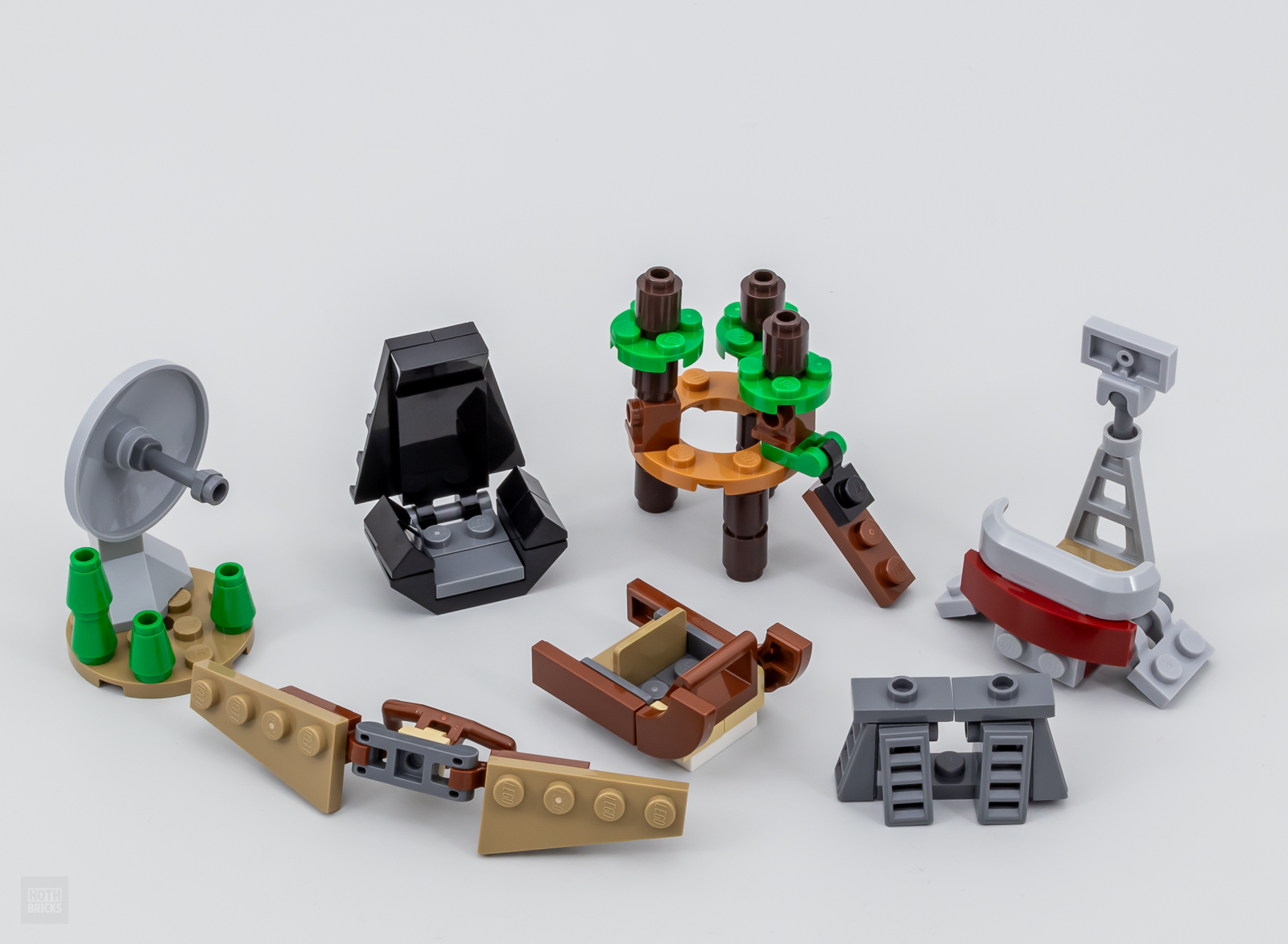 C'est parfois extrêmement symbolique et éventuellement utile pour mettre en scène les figurines fournies et donner de la consistance à un produit qui en manque un peu et même si l'aile volante de l'Ewok est prévue pour être placée dans une position un peu étrange en raison de la mobilité limitée de la figurine associée ou que la station de combat destinée au Clone Trooper est un peu ridicule et que le STAP est d'une stabilité toute relative. On fera avec.