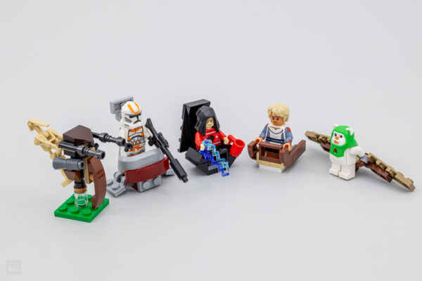 La figurine d'Omega est aussi dans le set 75323 The Justifier, celle du Clone Trooper de la 212ème est dans le set 75337 AT-TE-Walker, Leia est dans le set 75353 Endor Speeder Chase Diorama mais elle est livrée ici sans son casque, Palpatine utilise des éléments déjà vus et il n'y a guère que l'Ewok et le pull de Palpatine de totalement inédits et sans doute exclusifs pour l'éternité à cette boite.