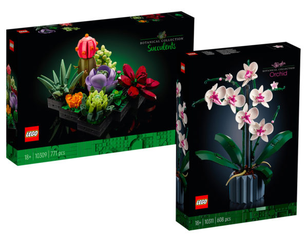 LEGO dévoile aujourd'hui officiellement deux nouveautés de ce qu'on appelle désormais la gamme LEGO BOTANICALS : les références 10309 Succulents (771 pièces - 49.99 €) et 10311 Orchid (608 pièces - 49.99 €) qui rejoindront dès le 1er mai 2022 les autres sets déjà disponibles sur le même thème, les sets 10289 Bird of Paradise (109.99 €), 10280 Flower Bouquet (49.99 €) et 10281 Bonsaï Tree (49.99 €).