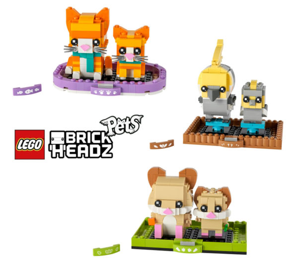 Au moins trois nouvelles références sont attendues dans la gamme LEGO BrickHeadz qui décline des duos d'animaux de compagnie sous l'intitulé "Pets", avec des chats roux tabbies (40480), des perruches calopsittes (40481) et des hamsters (40482).