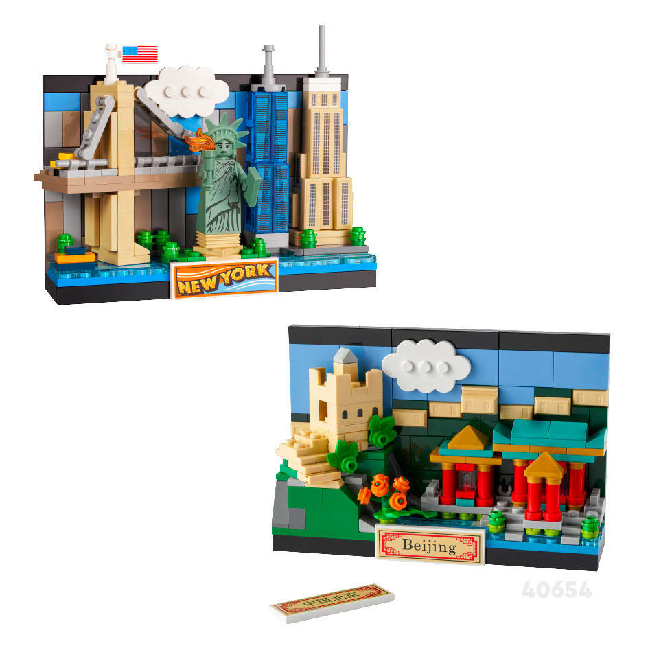Si le design de la référence 40519 New York Postcard reste inchangé, le set 40654 Beijing Postcard ne se contente pas de son côté d'un changement de référence (anciennement 40520) mais il fait désormais aussi l'impasse sur le drapeau chinois qui flottait au dessus de la muraille de Chine sur la version dévoilée fin 2021 (voir photos ci-dessous).