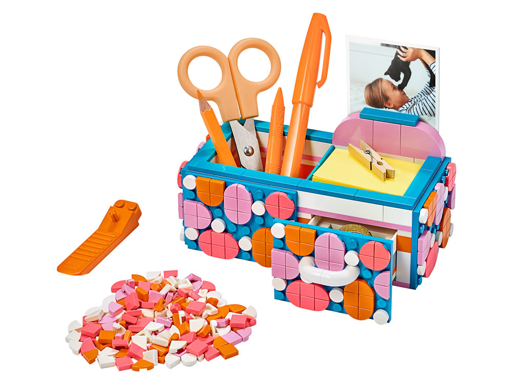 Vous n'avez pas trouvé votre bonheur avec les sets LEGO DOTS de la première vague commercialisée cette année ? LEGO a tout prévu avec une seconde fournée de produits qui décline le concept de constructions personnalisables à l'aide de petites pièces colorées sur de nouveaux supports comme un organiseur de bureau, des cadres photo ou une boite à bijoux, sans oublier les incontournables bracelets thématiques et un nouveau pack de pièces supplémentaires en sachet. Tout un programme.