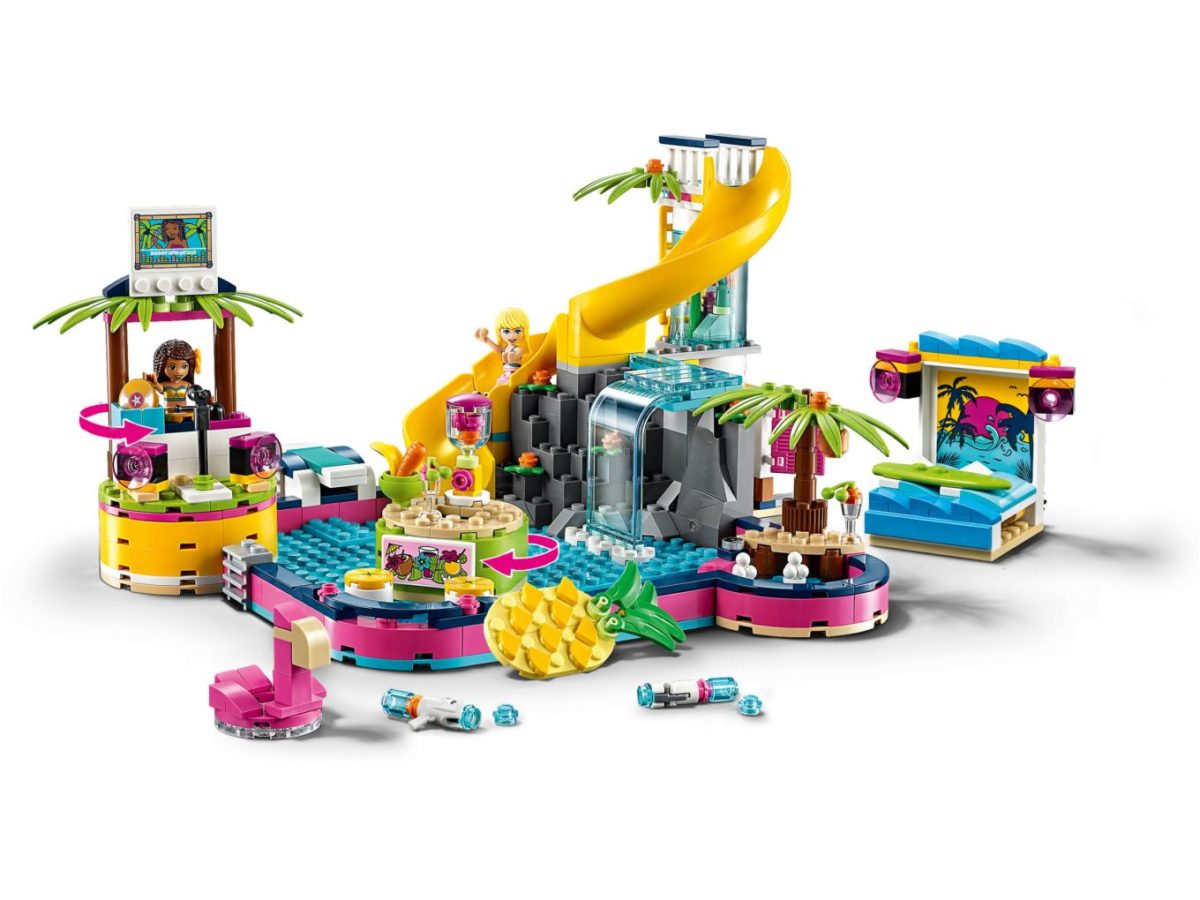 Comme d'habitude dans la gamme Friends, LEGO n'oublie pas qu'il faut aussi aller au restaurant, faire du cheval, faire des courses et passer la soirée en reprenant des tubes depuis le fond de la piscine.