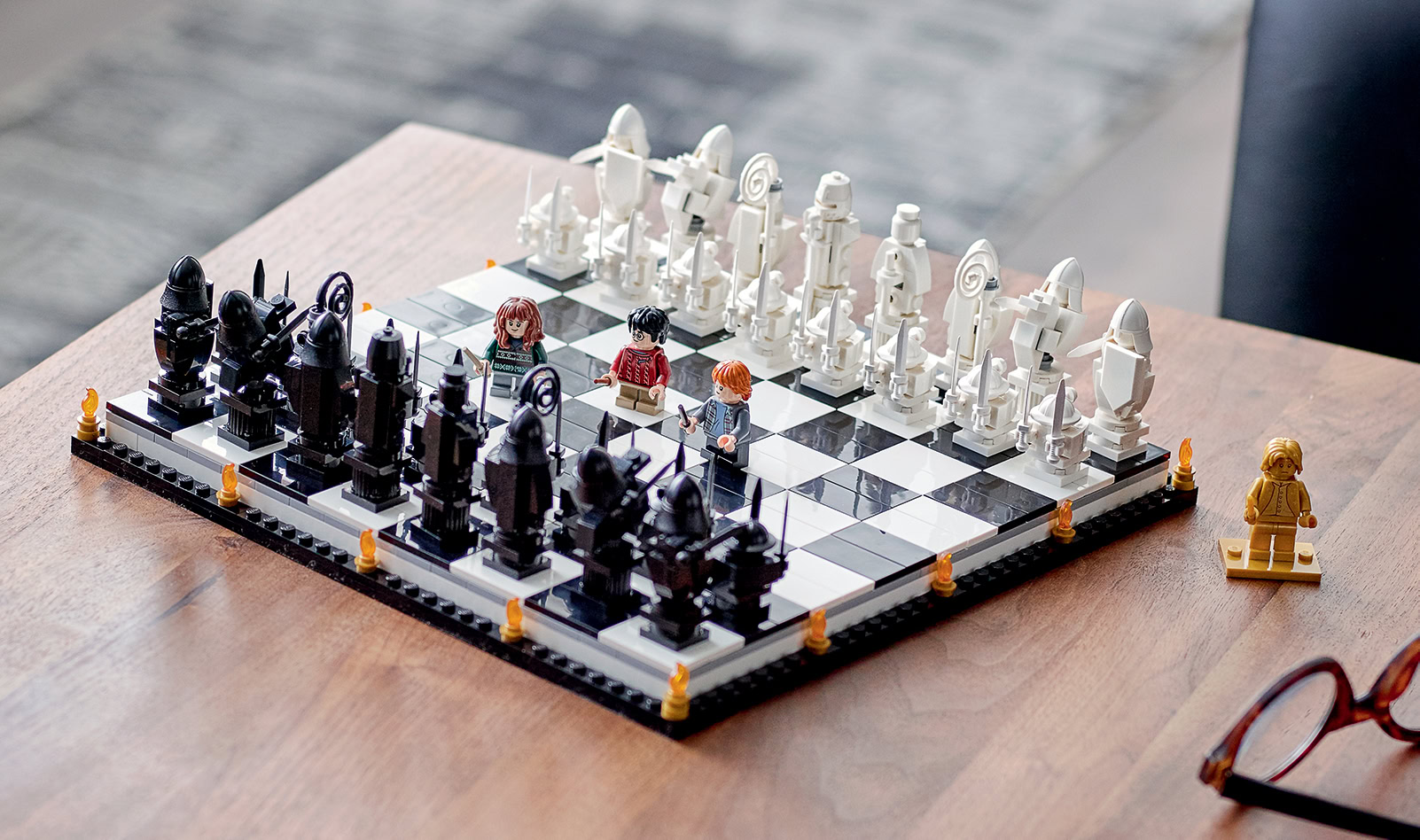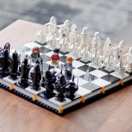Autre nouveauté, l'arrivée dans la gamme d'un jeu d'échecs qui reproduit la scène du premier film (Harry Potter à l'école des sorciers / Harry Potter and the Philosopher's Stone). Le plateau de 27 x 27 cm est occupé par des pièces à construire et j'aurais préféré des minifigs.
