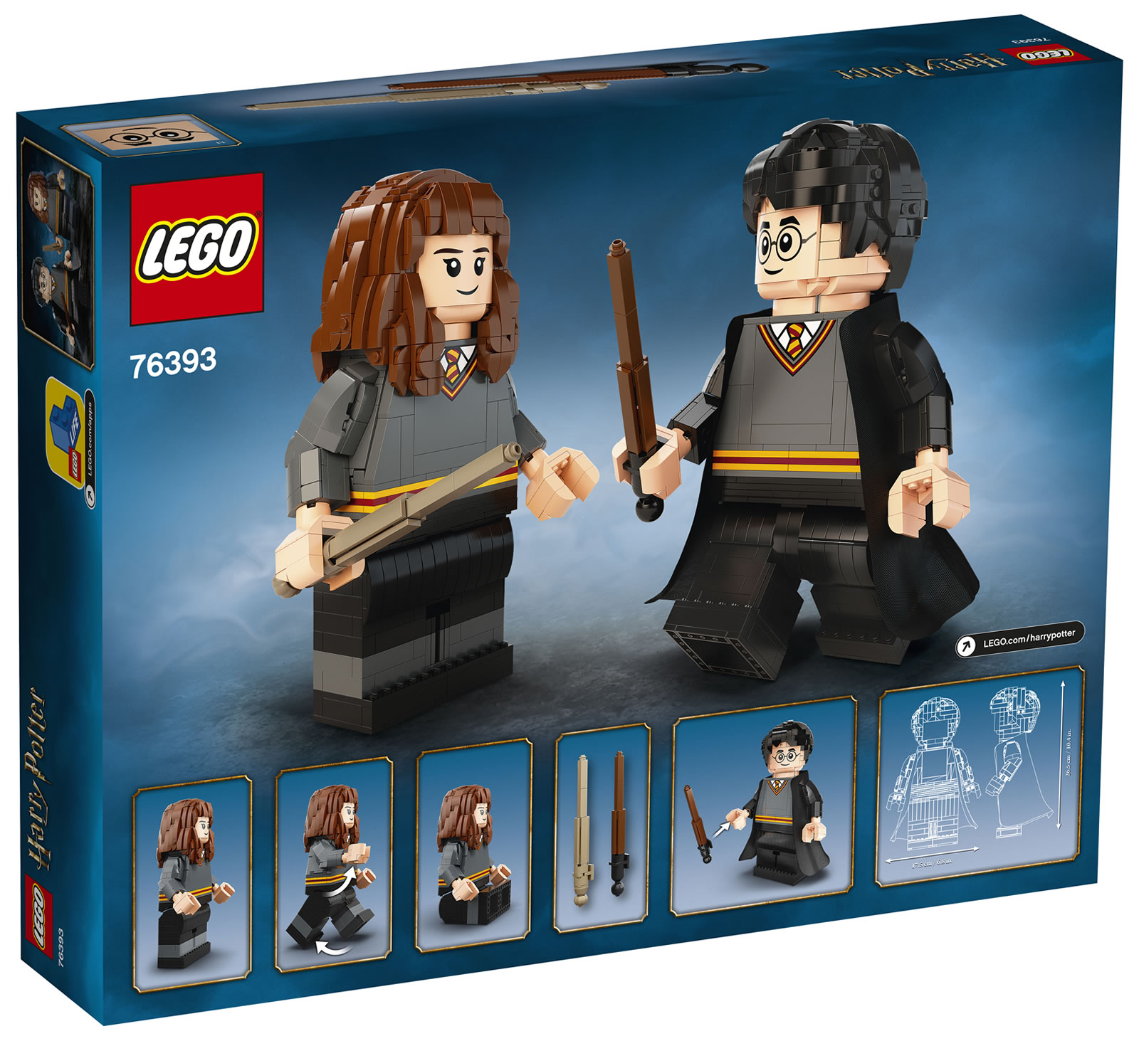 Grosse nouveauté cette année : la commercialisation de deux maxifigs de 26.5 cm de haut à assembler qui me semblent plutôt intéressantes avec d'un côté Harry Potter et de l'autre Hermione Granger. Le format ouvre la porte à d'autres créations du même type dans de nombreuses gammes, j'attends de voir ce que LEGO nous réserve. Les deux maxifigs me semblent plutôt réussies, sauf peut-être au niveau du menton des deux personnages qui manque un peu de relief.
