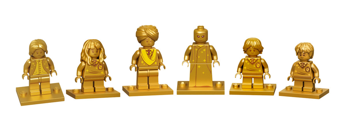Les six minifigs exclusives dorées produites pour célébrer le 20ème anniversaire de la gamme sont réparties dans les boites ci-dessous (*). Je pense qu'il y en aura quelques autres dans les futurs sets qui ne sont pas officiellement dévoilés aujourd'hui, Dumbledore aurait certainement été fourni en version Gold dans le set 76394 Fawkes, Dumbledore’s Phoenix si ce n'était pas le cas...