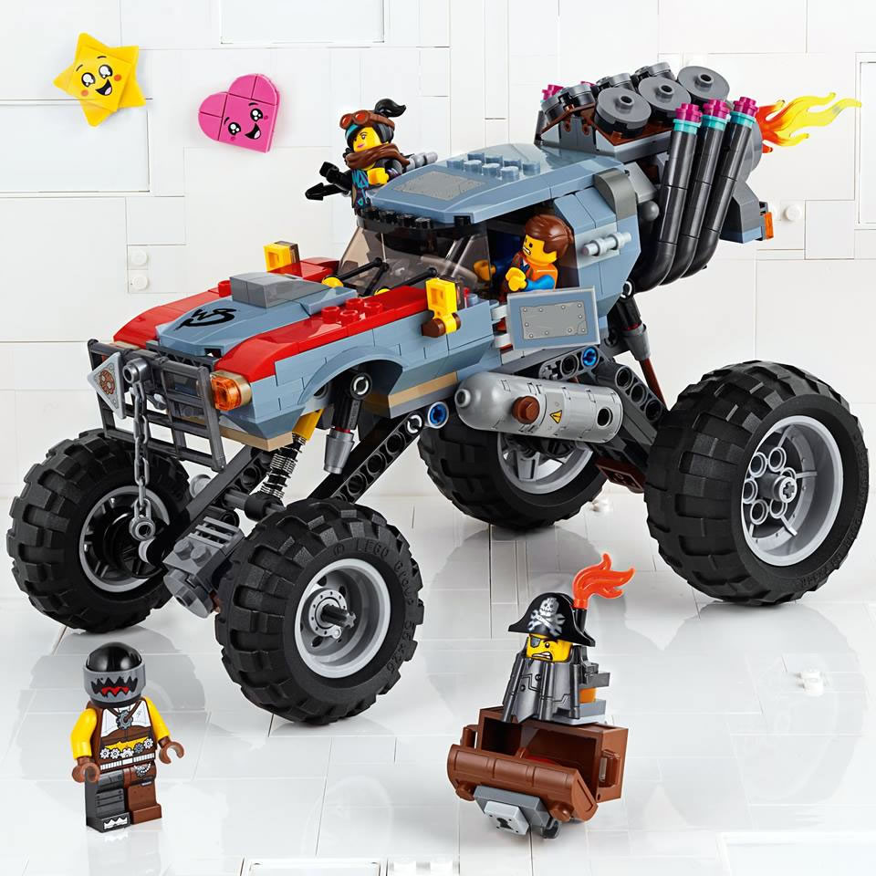 Dans le set 70829 Emmet & Lucy’s Escape Buggy (49.99$), on retrouve Emmet et Lucy Wyldstyle (Cool-Tag) aux commandes d'un énorme buggy, une version assez déroutante de MetalBeard et un nouveau personnage : Sharkia. Star (Étoile) et Heart (Cœur) sont également présents dans ce set.