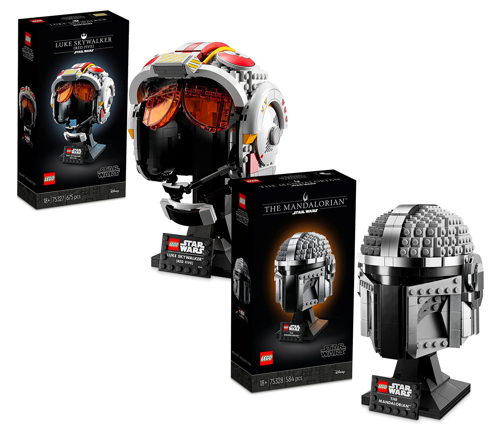 L'annonce n'est pas vraiment "officielle" mais c'est Amazon Pologne qui dévoile aujourd'hui deux nouveaux casques de la gamme LEGO Star Wars, les références 75327 Luke Skywalker (Red Five) et 75328 The Mandalorian (75327 ici et 75328 là). L'inventaire de ces deux boites reste similaire à d'autres références basées sur le même principe déjà commercialisées avec 675 et 584 pièces, on peut donc sans trop se mouiller parier sur le prix public habituel de 59.99 € pour ces deux boites. Commercialisation sans doute prévue pour le 1er mars 2022, nous reparlerons plus en détail de ces deux produits très prochainement.