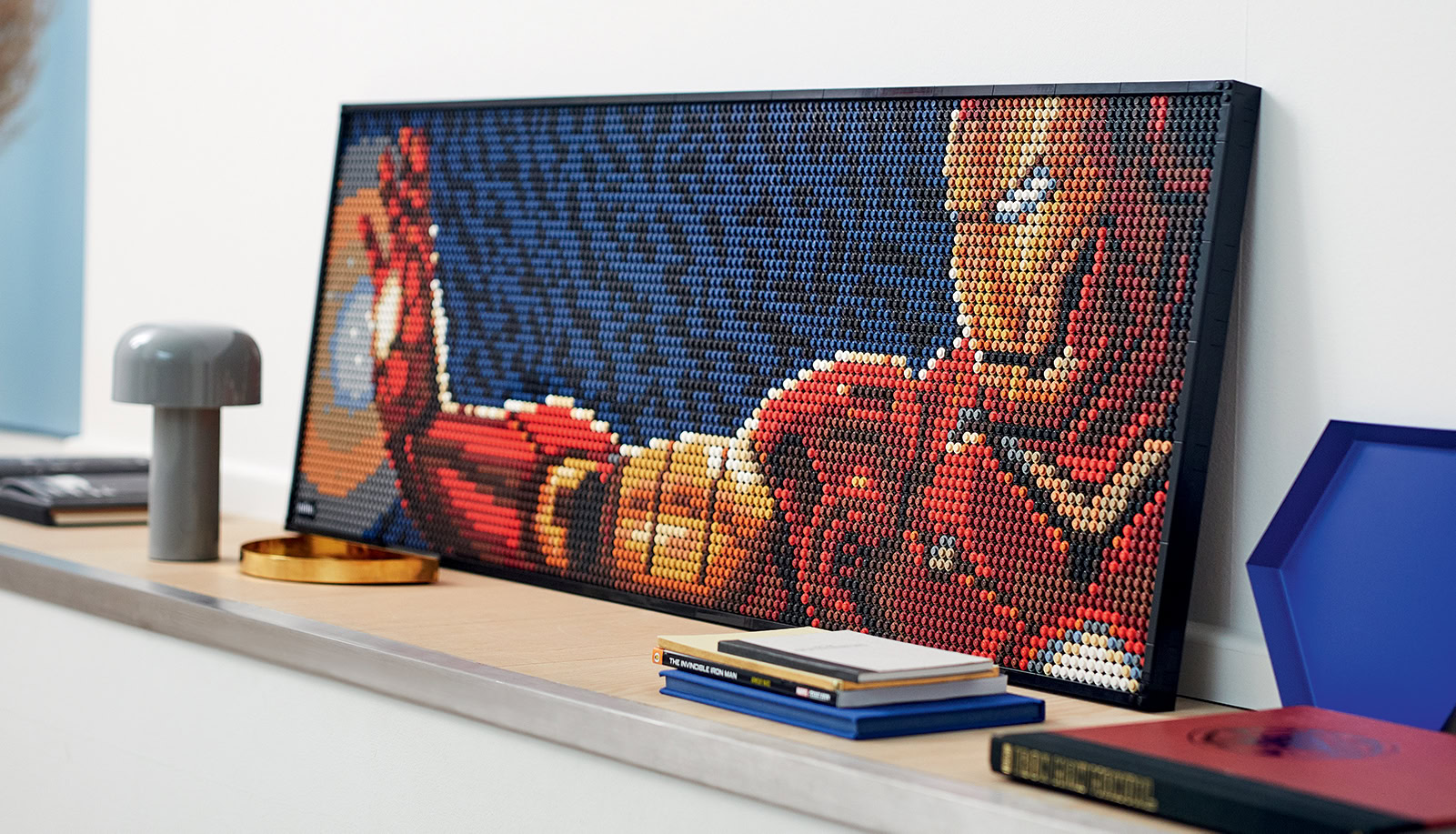 Trève de balivernes marketing, les quatre produits annoncés aujourd'hui sont surtout des mosaïques de 40 x 40 cm (48 x 48 tenons), constituées de plusieurs milliers de pièces, à construire et à exposer sur les murs du salon. Pour le lancement de cette nouvelle gamme dont on ne sait pas pour l'instant si elle est amenée à accueillir d'autres références par la suite, LEGO y va à fond dans la pop culture avec du Marvel, du Star Wars, une reproduction de l'une des œuvres les plus connues d'Andy Warhol et les membres des Beatles :