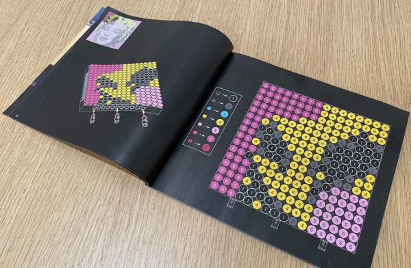 Chaque mosaïque est divisée en sections de 16 x 16 connectées entre elles par des pins Technic et LEGO fournit les pièces formant l'encadrement ainsi qu'une plaque "signature" pour chacune des constructions.