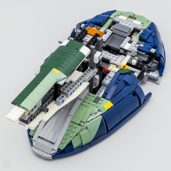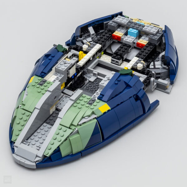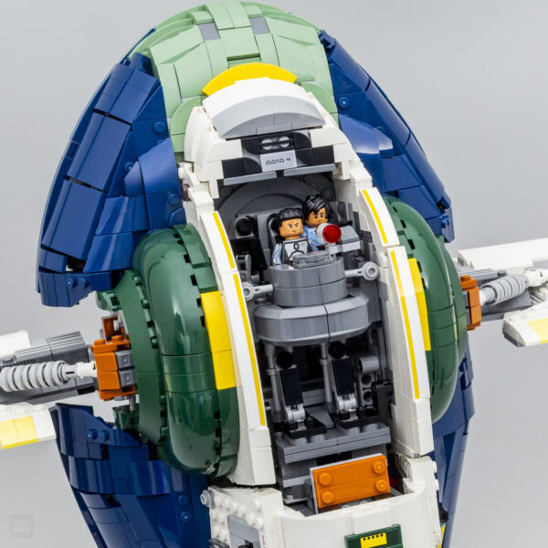 Le reste de la carlingue est une variation de la version de 2015 avec de grosses similitudes en marge du changement de teinte pour correspondre au sujet traité et quelques détails de finition qui nous rappellent que nous sommes bien en 2025. 10 années se sont écoulées entre les deux interprétations et les nouveaux éléments arrivés au catalogue LEGO durant cette période sont ici utilisés à bon escient. À titre de comparaison, l'inventaire de cette nouveauté est de 2970 pièces contre 1996 pièces pour la version 2015 du Slave I.