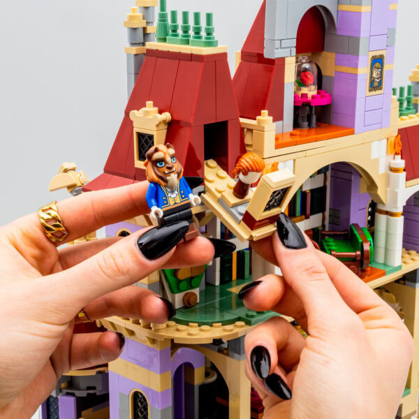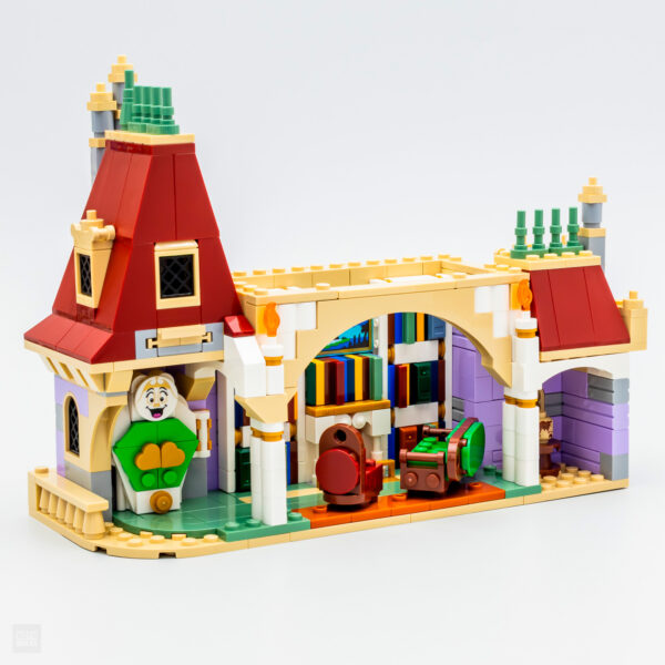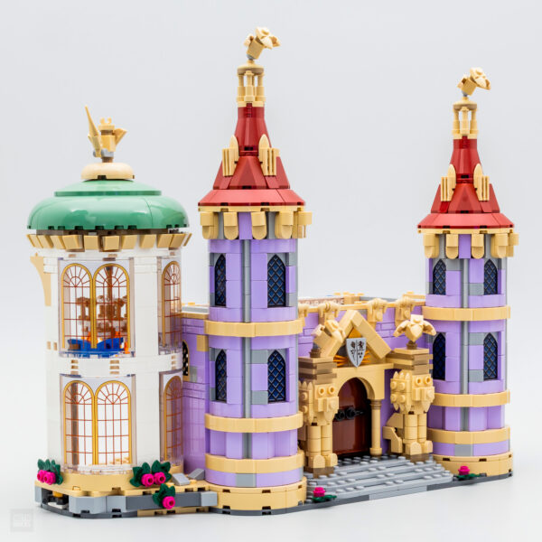 Ce n'est pas pour autant un château à l'économie, l'ensemble étant vraiment détaillé et pourvu de fonctionnalités intéressantes. La proposition reprend bien les principales tours présentes sur le château vu en 1991 dans le film d'animation, même si certaines d'entre elles sont légèrement repositionnées ou réduites et qu'il manque le porche d'entrée placé plus bas que le niveau de la porte principale devant la bâtisse. En y réfléchissant, le modèle obtenu ici est en fait plus celui visible via l'attraction du train Casey Jr. de Fantasyland ou dans le parc Disneyland de Tokyo que du film.