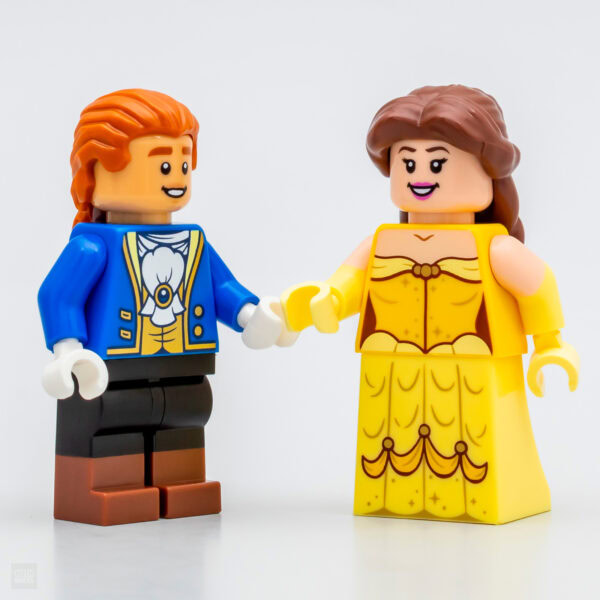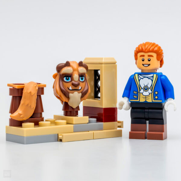 Du côté des figurines fournies, on obtient Belle, la Bête, Gaston, LeFou et Maurice. Belle peut être mise en scène debout dans sa jolie robe de bal très bien exécutée ou assise sur une chaise en remplaçant la partie inférieure de la figurine par un assemblage de pièces. LEGO a prévu les deux possibilités et c'est appréciable.