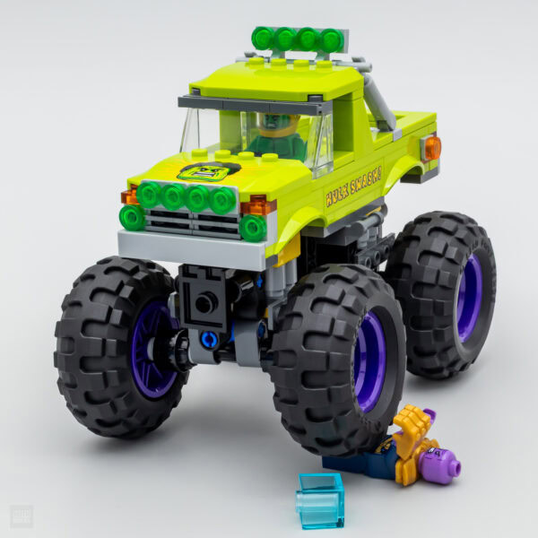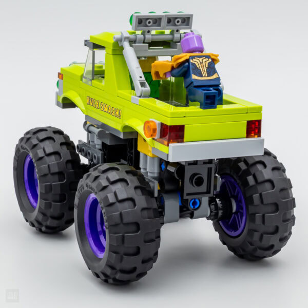 Le Monster Truck livré ici ne démérite pas, il est correctement exécuté compte-tenu de l'inventaire fourni et il se paye même le luxe de disposer d'un semblant de suspensions via quelques inserts en caoutchouc. La très grande majorité de l'inventaire du set passe dans le véhicule, Thanos étant à pied.