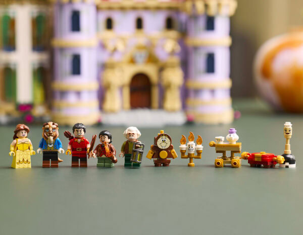 Pour accompagner le chateau, LEGO livre les minifigs de Belle, la Bête, Gaston, LeFou et Maurice ainsi que Lumière, Fifi, Cogsworth, Chip et Mrs. Potts.