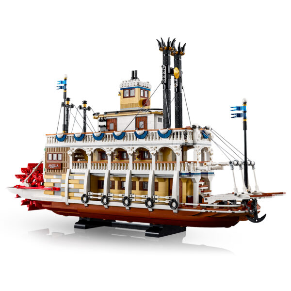 Ce produit est inspiré de l'idée intitulée Western River Steamboat soumise en son temps sur la plateforme LEGO IDEAS par Aaron Hall alias CTDpower et LEGO à manifestement cette fois vraiment respecté l'intention du fan designer. Ce gros Modular flottant (qui ne flotte pas) offrira des sections amovibles pour profiter de l'intérieur, une roue à aubes reliée au moteur à vapeur ainsi qu'un gouvernail contrôlé depuis la barre du bateau. Le tout est à installer sur un support fourni pour être exposé sur la commode du salon.