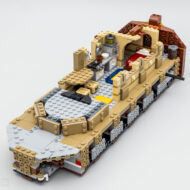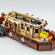 L'engin étant un bateau marchand, on y trouve une flopée de marchandises prêtes à être vendues via de nombreuses caisses rangées où il reste de la place. C'est touffu sans être trop encombré, et on a bien l'impression d'avoir affaire au moyen de locomotion d'un commerçant itinérant qui passe de village en village sur sa péniche à fond plat. Concernant le style de la construction, j'hésite entre l'ambiance un peu médiévale qui se dégage de l'ensemble et le côté presque rétrofuturiste de la chose. Ce sera à chacun d'apprécier la thématique développée ici.