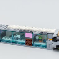 Les enfants qui joueront vraiment avec ce playset (qui sont-ils ?) verront sans doute dans cette extension de l'espace qui permet en principe de s'amuser un peu une solution facilitant l'installation des figurines fournies mais on est loin de la maison de poupée cossue. Je souligne au passage que la blague récurrente chez LEGO qui consiste à intégrer des toilettes un peu dans tous les bâtiments tombe ici à mon avis à plat. Ces toilettes occupent en effet une pièce qui aurait pu être consacrée à autre chose et les espaces disponibles ne sont pas vraiment légion dans cette construction.
