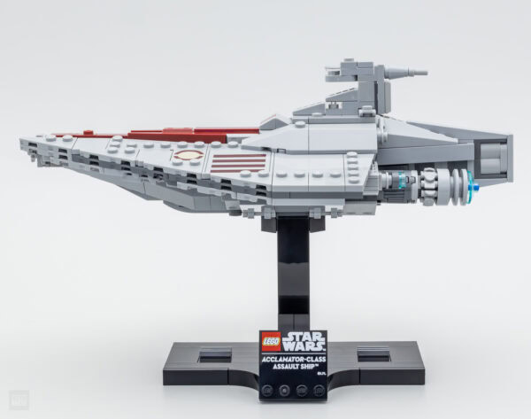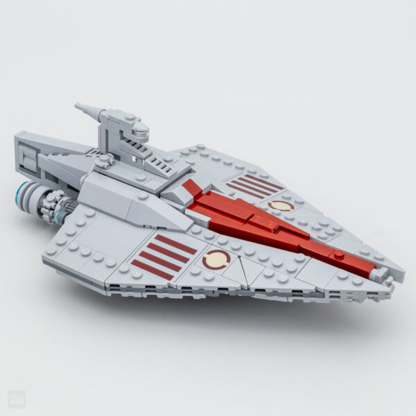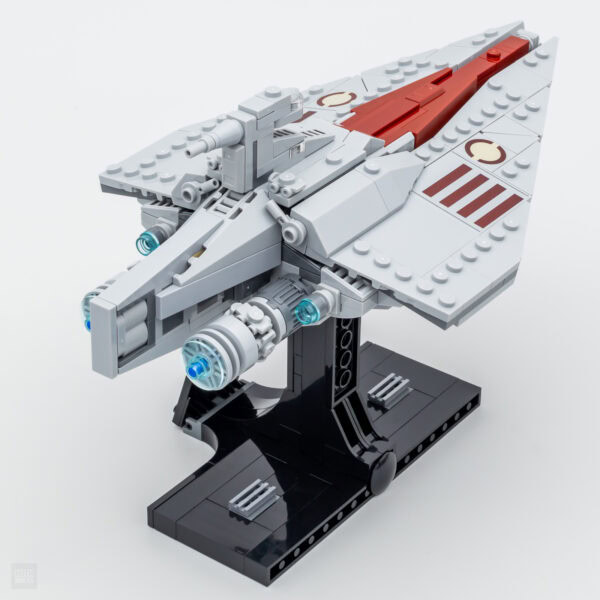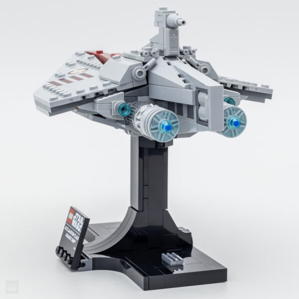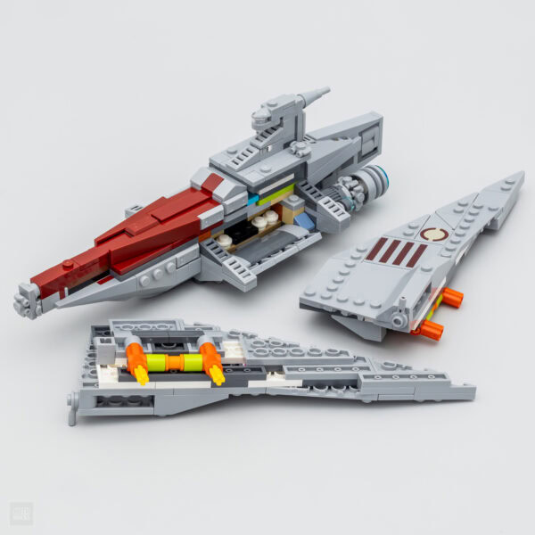 Il s'agit donc ici d'assembler une maquette d'Acclamator en version Clone Wars et le vaisseau de référence au design assez convenu n'autorise pas autant de fantaisie créative que par exemple pour un Venator. La version LEGO semble donc logiquement un peu simpliste même si elle reproduit plutôt correctement le transport de troupes vu à l'écran.