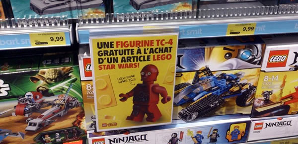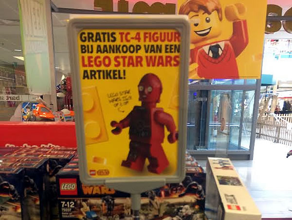 C'est une promotion inhabituelle, mais elle fait le bonheur des belges et des hollandais (et des lecteurs du blog grâce à la gentillesse d'Alexandre) : Le polybag LEGO Star Wars 5002122 contenant la minifig du droïde de protocole TC-4, est actuellement offerte pour l'achat d'une boite de la gamme LEGO Star Wars.