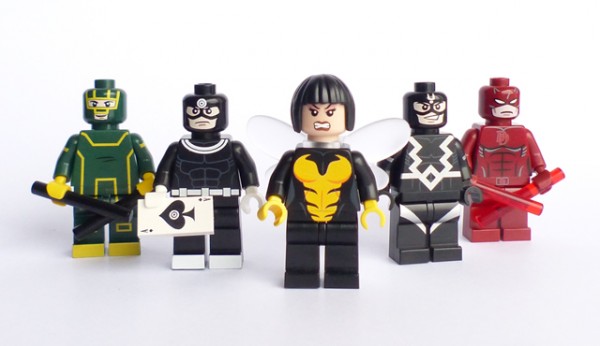 Alors allez faire un tour chez minifigures.co.uk, revendeur sérieux de minifigs customs haut de gamme. Vous y trouverez au milieu du reste, les minifigs présentes sur la photo ci-dessus avec de gauche à droite : Kick-Ass dans son beau pyjama vert et jaune, Bullseye et son as de pique, Wasp dans la version du jeu vidéo LEGO Marvel Super Heroes, Black Bolt et sont costume gris argenté et Daredevil, le justicier de Hell's Kitchen.