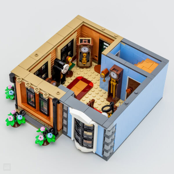 Du côté du mobilier installé dans les différents espaces intérieurs, c'est du niveau de ce qu'on trouve habituellement dans ce type de set avec ici un accent mis sur les horloges diverses et variées qui remplissent logiquement la boutique de l'horloger. L'exercice est intéressant avec différents modèles qui inspireront sans doute tous ceux qui cherchent des variantes pour meubler leurs créations. La mercerie est plus compacte, elle est remplie jusqu'à plus soif de bobines et de chapeaux, on y trouve également un mannequin au visage neutre.