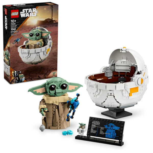 On obtient aujourd'hui les premiers visuels officiels du set LEGO Star Wars 75403 Grogu with Hover Pram, une boite de 1048 pièces attendues en rayon dès le 1er janvier 2025 au prix public de 99,99 €. L'ensemble me parait plutôt convaincant avec une figurine qui offre quelques fonctionnalités, un support pour le berceau et un présentoir flanquée de l'habituelle plaque distillant quelques facts sur le sujet traité pour accentuer le côté collector de la chose.