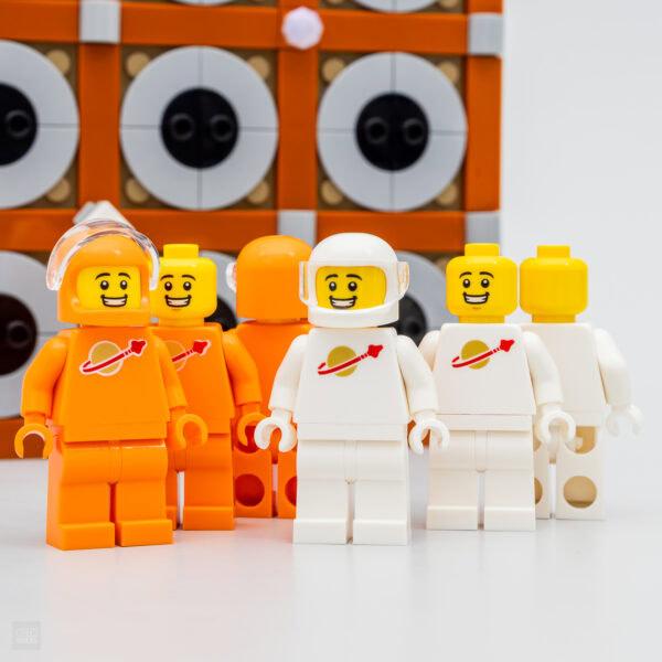 Le torse blanc est celui déjà vu dans les sets The LEGO Movie 2 70841 Benny's Space Squad et LEGO ICONS 10497 Galaxy Explorer. Toutes les figurines ont la même tête, un éléments très courant notamment dans les gammes CITY ou encore Speed Champions.