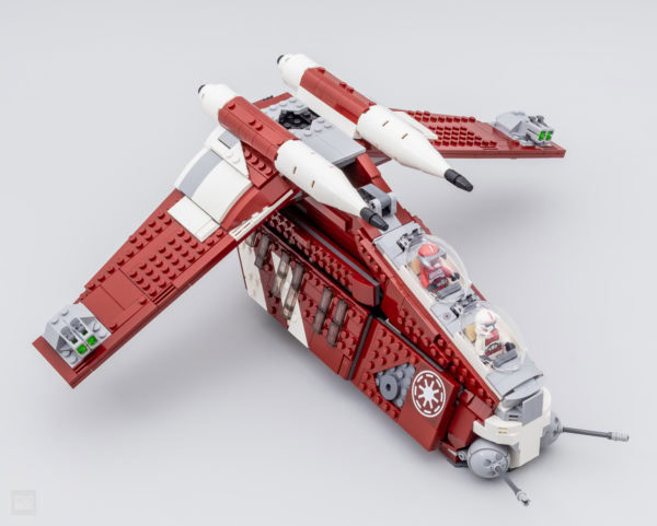 On pourrait discuter longtemps de la simplification évidente du vaisseau surtout si on le compare avec les autres sets qui mettent en scène le Republic Gunship classique déjà commercialisés par le passé mais LEGO a ici changé d'échelle, comme c'est le cas depuis deux ans dans de nombreux sets de la gamme Star Wars, et d'approche et il faudra de toute façon faire avec.