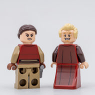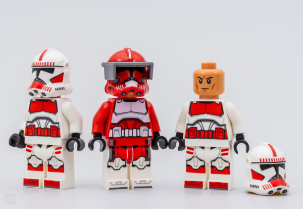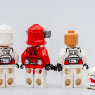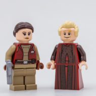 La dotation en minifigs est ici à la fois intéressante et un peu décevante : même si la figurine est réussie, Padmé Amidala n'est pas dans la jolie tenue vue dans l'épisode concerné, il manque le sénateur de Scipio Rush Clovis qui aurait aisément pu faire partie du casting, la tampographie de Palpatine n'est pas parfaitement alignée entre le torse et la jupe et la zone blanche sur le torse de Commander Fox vire franchement au rose parce que LEGO n'arrive toujours pas à imprimer une couleur claire sur une pièce à la teinte foncée.