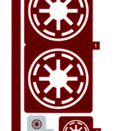 Il faut coller quelques stickers pour que le vaisseau soit conforme à la version vue à l'écran mais il n'y a que cinq autocollants. Comme souvent la couleur de fond de ces stickers n'est pas parfaitement raccord avec la teinte des pièces en Dark Red sur lesquelles ils prennent place et c'est un peu dommage. je note quelques légers écarts de teinte entre les pièces en Dark Red, mais rien de catastrophique.