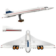 LEGO dévoile aujourd'hui officiellement le set LEGO ICONS 10318 Concorde, une boite de 2083 pièces dont quelques visuels étaient déjà disponible jusqu'ici sur les réseaux sociaux. Il s'agira d'assembler une maquette de 102 cm de long sur 43 cm de large qui inclut quelques raffinements comme un support de présentation orné d'une petite plaque avec quelques facts sur l'avion, d'un nez mobile pour reproduire les trois configurations disponibles (0°, 5° et 12.5°), de sections de carlingue amovibles qui permettent de découvrir les aménagements intérieurs et de trains d'atterrissage rétractables pilotés par la queue de l'avion qui sert de molette.