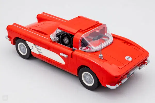 Cette Corvette C1 n'est sans doute pas le meilleur véhicule de la gamme chez LEGO mais elle a à mon avis tout de même fière allure. Elle contribuera incontestablement à mettre en valeur les autres maquettes exposées sur une étagère : un peu de rouge ne fera finalement pas de mal au milieu du noir de la Camaro du set 10304 Chevrolet Camaro Z28, du bleu de la Mustang du set 10265 Ford Mustang ou encore du blanc de la Porsche du set 10295 Porsche 911. Il sera sans doute rapidement possible de trouver cette Corvette C1 un peu moins cher que le tarif demandé par LEGO, il n'y aura alors aucune raison de faire l'impasse sur cette boite.