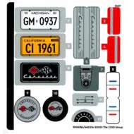 On trouve évidemment une petite planche de stickers dans la boite, je vous ai scanné la chose, et tout ce qui n'y est pas est donc tampographié comme par exemple les "baguettes chromées" qui circulent sur la carrosserie, les contours de sièges ou le logo Corvette à l'avant du capot. On notera que LEGO a progressé lorsqu'il s'agit d'aligner un motif imprimé sur différents éléments, ce n'est pas encore parfait mais c'est par exemple beaucoup mieux que sur le bas de caisse de la Mustang du set 10265 Ford Mustang. Il suffit ici d'interchanger les quatre Plates frappées d'une ligne droite jusqu'à obtenir un alignement acceptable.